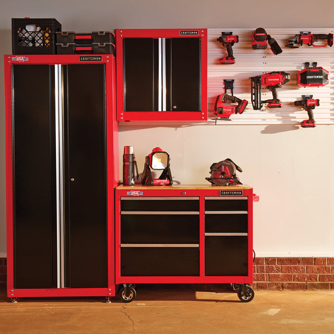 Versatile storage: Safely store power tools, hand tools, tool sets, and more at eye level