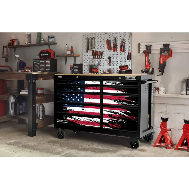 Celebrate the USA - Show your pride with the magnetic, removable red, white, and blue flag design that adds a sleek, stylish look to your workshop or garage