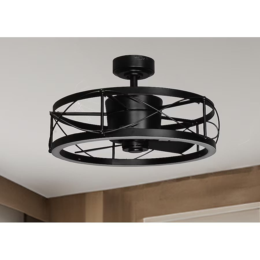 Harbor Breeze Yorkmont 23-in Integrated LED Black with Matte Black Blades Fandelier Ceiling Fan With Light - Remote Included ( 3 -Blade )